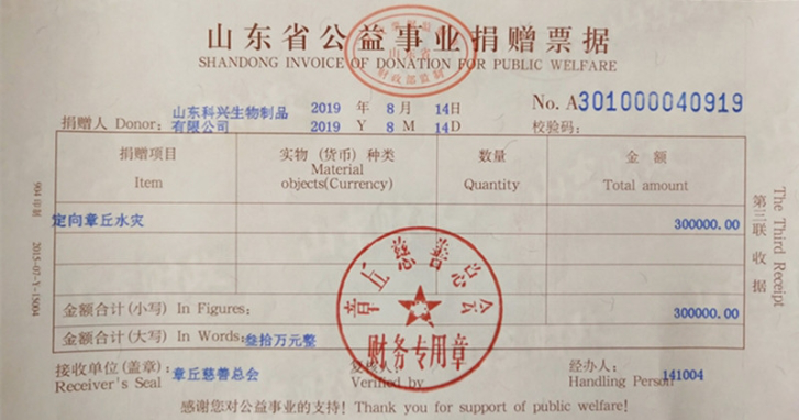 大災(zāi)顯大愛,大愛救大災(zāi)。作為根植章丘20余年的本土企業(yè),科興制藥始終秉承“精益制藥、精益用藥、守護健康”的理念,積極承擔(dān)社會責(zé)任。在災(zāi)難面前,義不容辭,第一時間捐款救援。